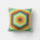 Dit is een geometrisch, abstract digitaal ontwerp met concentrische hexagonale vormen die van het centrum naar buiten stralen. Elke band wisselt af in kleur, met behulp van een retro palet van sinaasappel, geel, crème, aqua, groen en bruin. De symmetrie en herhaling creëer is een visueel opvallend, bijna hypnotiserend effect dat doet denken aan de kunst en patronen uit de jaren zeventig.