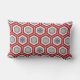 Traditionele Japanse kimono print lumbale kussen - nestende zeshoeken met een centraal bloemmotief in diep Chinees rood, wit en donkergrijs op een lichte zilvergrijze / grijze achtergrond