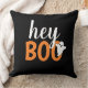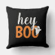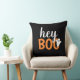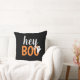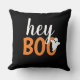 Moderne en schattige "Hey Boo" Halloween home decor-kussen bieden tekst in oranje en witte letters met een klein spookaccent.