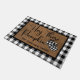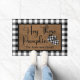 Doormat heeft de woorden "Hey Daar Pumpkin" in zwart scripted font op een natuurlijke coirachtige achtergrond met zwarte en witte pompoen van buffelroodpompoen en een zwarte en witte buffelrand. Pas aan door uw familienaam of favoriete tekst toe te voegen om dit model uniek van u te maken.