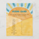 Unieke Waterverf Sunshine thema Baby shower Baby Guess Game Kaart in geel, blauw en gebrande Oranje kleuren.