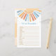 Voeg een extra dosis plezier toe aan uw baby shower met onze heerlijke Sunshine Baby shower Game Kaarten! Perfect voor het creëren van gedenkwaardige momenten, deze kaarten zijn ontworpen om uw gasten te vermaken en te betrekken. Deel de vreugde van het verwelkomen van je kleintje met vrienden en familie! BS642 Antwoordsleutel: 1. Hoge voorzitter 2. Kinderarts 3. Kinderwagen 4. Pasgeborene 5. Borstvoeding 6. Deken 7. Eén zijde 8. Fopspeen 9. Fles 10. Baby Monitor 11. Luier 12. Autostoeltje 13. Laarzen 14. Bassinet 15. Eerste stappen