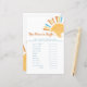 Voeg een extra dosis plezier toe aan je baby shower met onze charmante Sunshine Baby Shower spelkaarten! Perfect voor het creëren van onvergetelijke momenten, deze kaarten zijn ontworpen om je gasten te vermaken en te betrekken. Deel de vreugde van het verwelkomen van je kleine met vrienden en familie!