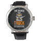 This unique wall clock blends trucking passion with a spiritual sentiment. Featuring an orange semi-truck against a black background and a matching orange rim, it boldly states: "THE HIGHER THE TRUCK THE CLOSER TO GOD". It's a thoughtful and meaningful gift for any truck driver who finds solace and connection on the open road. The design tool can also be used to add custom text if you want your name or company on this clock. You can customize the color of the frame to any color you desire by going into the design tool.