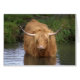 Hoerlandvee neemt een bad in de rivier de Wey, Guildford, Engeland.