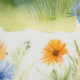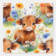 Waterverf boerderijdieren hoogland koe in een bloemenveld.