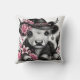 Een schattige zwart-witte Highland koe versierd met een stijlvol zwart pet versierd met roze bloemetjes, met charme en kunstzinnig design.