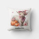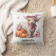 Een hoogland koe draagt een heks pet met roze bloemetjes en een pompoen. Halloween Sierkussen. Maak deze dag speciaal en vier het met je familie en wens hen een fijne Halloween. herfst herfstvibes, we kunnen jouw naam personaliseren