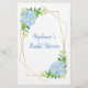 Dit vrijgezellenfeest spel is een 'He Said', zei ze, wie zei het spel? Het is voorzien van waterverf blauwe hydrangebloemen, bladeren en faux gouden geometrische vormgeving. Pas de achterzijde van de kaart aan met de naam van de bruid. Overeenkomende producten beschikbaar.