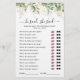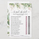 Maak van je vrijgezellenfeest een om je te herinneren met deze elegante groenerij "zei ze," bridal party game! De groene waterverf eucalyptusbladerbladeren zijn voorzien van trendy goudflorale accenten en een tekst-sjabloon die gemakkelijk kan worden gepersonaliseerd.