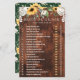 Een stijlvol en stijlvol vrijgezellenfeest gameontwerp dat ideaal is voor de toekomstige bruid in landstijl. Ons ontwerp bevat onze handbeschilderde waterverf gouden gele zonnebloemen, witte roomfloralen en natuurlijke groenheden die zijn ingericht om deze elegante landstijl te creëer. "Bride of Groom Raad wie het zei" wordt bovenaan getoond. De gouden gloed, de crème en het bosgroene kleurenpalet creëer een elegante rustige landstijl. De gele Waterverf waterverf bloemen zonnebloemen en groen lijst bovenaan. Aan de achterkant is ons complementaire waterverf gele zonnebloempatroon zichtbaar. Alle bloemen zijn met de hand getekende originele kunstwerken van de Moodthologie.