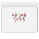 "मु झे म से प्" - "Ik hou van je" in het Hindi. Geef deze mooie kaart op Valentijnsdag of wanneer je je liefde wilt uitdrukken. Een enkel roos op een plant komt tegen een roodachtige achtergrond uit.