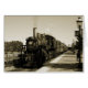 Een foto van sepia van een historische stoomlocomotief als hij uit het verleden scheurt; een prachtig geschenk voor elke trein aficionado.