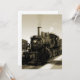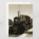 Een foto van sepia van een historische stoomlocomotief als hij uit het verleden scheurt; een prachtig geschenk voor elke trein aficionado.
