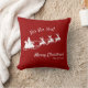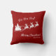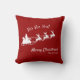 Voeg een leuke seizoensaanraking toe aan uw huis met deze aangepaste rode en witte kussen. De dunne kussens voorzien van een rode achtergrond met een witte kerstgroet van Merry en Ho Ho-tekst, je familienaam en de kerstman die in zijn slee met rendier vliegt. Dit werpt kussens maakt ook een geweldig gepersonaliseerd verjaardagscadeau, vrijgezellenfeest, bruiloft, Kerstmis of ander vakantiecadeau.