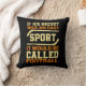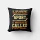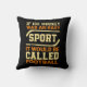 Hockey Versus Football kussen bevat tekst van geel en goud en twee hockeysticks. Deze hockeyspeler leest als Ice Hockey een gemakkelijke sport was, dan zou het Football worden genoemd!
