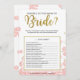 Deze moderne bloemige "Hoe goed ken je de bruid" heeft een roze bloemige achtergrond met gouden glittersplashes. De tekst is geschreven in een mix van een speelse kalligrafie-lettertype en een modern schreefloos lettertype, deze Hoe goed ken je de bruid kaart is gepersonaliseerd met de naam van de aanstaande bruid en de datum van de bruidsuitnodiging.
