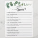 Zo goed weet je dat het groom vrijgezellenfeest spel een perfecte activiteit is voor een modern vrijgezellenfeest feest. Het ontwerp omvat waterverf met de hand getrokken elegante botanische eucalyptustakken en -bladeren.