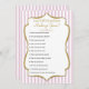 Een leuk en elegant roze en gouden vrijgezellenfeest spel met faux goudglitter accent lijst en roze en witte strepen met goud en zwarte tekst. Deze entertainmentactiviteit van het vrijgezellenfeest zal een klap zijn. Verander de vragen om aan te passen! Hoe goed ken je de bruid, bruidtriviespel?
