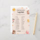 Deze schattige baby showers spelkaart heeft een charmant boerderijen dierenthema met schattige illustraties van een koe, konijn, kuiken, paard en varken, omgeven door vrolijke bloemen en een lachende zon. De zachte pastelkleuren en grillig design creëer hebben een warme en uitnodigende sfeer. Bezoek onze winkel om ons hele Brown Schattige Boerderij Animal collectie te uitzichten.