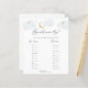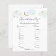 Baby shower spelkaart met blauwe wolken en gouden sterren om overeen te komen met de Over de Maan Collectie in de Adore Paper Co Zazzle winkel. Een leuke manier om met feestgangers te communiceren door de leeftijd van de aanstaande ouders in de foto's te raden.