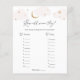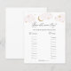 Baby shower spelkaart met roze wolken en gouden sterren die passen bij het Collectie Over the Moon in de winkel Adore Paper Co Zazzle. Een leuke manier om met douchegasten te communiceren om de leeftijd van de ouders te raden in de foto's.