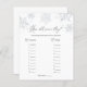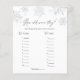 Baby shower spelkaart met waterverf sneeuwvlokken die overeenkomen met het Collectie Glittery Snowflake in de winkel Adore Paper Co Zazzle. Een leuke manier om met douchegasten te communiceren om de leeftijd van de ouders te raden in de foto's.