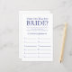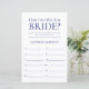 Dit eenvoudige, minimalistische, moderne marineblauwe "How Old Was The Bride?"-bruidsfeest-spelblad is perfect voor elk feest. Dit leuke en gemakkelijke spel zal zeker veel gelach met zich meebrengen op elk feest! Laat familie en vrienden foto's van de bruid op verschillende leeftijden sturen en laat ze afdrukken. Nummer ze en leg ze bij deze spelbladen. Geef gewoon een blad aan elke gast (vergeet de pennen niet) en laat de competitie beginnen! Je zult verbaasd zijn hoeveel mensen de leeftijd van de bruid echt weten. In enkele seconden kun je zien hoe je spelblad eruit zal zien. Selecteer gewoon "Personaliseer deze sjabloon" en typ de naam van de bruid in.