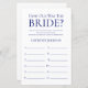 Dit eenvoudige, minimalistische, moderne donkerblauwe "How Old Was The Bride?"-bruidsfeest-spelblad is perfect voor elk feest. Dit leuke en gemakkelijke spel zal zeker veel gelach brengen naar elk feest! Laat familie en vrienden foto's van de bruid op verschillende leeftijden sturen en laat ze afdrukken. Nummer ze en leg ze bij deze spelbladen. Geef gewoon een blad aan elke gast (vergeet de pennen niet) en laat de competitie beginnen! Je zult verbaasd zijn hoeveel mensen de leeftijd van de bruid echt weten. In seconden kun je zien hoe je spelblad eruit zal zien. Selecteer gewoon "Personaliseer deze sjabloon" en typ de naam van de bruid in.