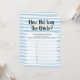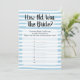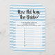 Blauw en wit raden het spel 'The Bride's Age' voor vrijgezellenfeesten. Handgetrokken witte horizontale strepen.