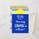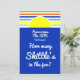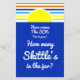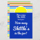 Baby shower Raad Hoeveel in het spel van de kruik voetstuk teken. Bijpassend ontwerp voor Here Comes The Son Summer Stripes Baby shower Collectie. Een modern en leuk en kleurrijk ontwerp voor een vrolijk zomerse baby shower met een Rising Sun. Vrolijk en leuk lettertype voor aanpasbare tekst. Design maakt deel uit van het Summer Stripes Collectie, dat babydoucheuitnodigingen, luierloterij en boekenbibliotheekbehuizingen, feestartikelen, decoraties, geschenken en meer omvat.