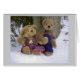 Wat romantisch! Een jong teddykoppel met poten terwijl ze op een wintermiddag onder een boom zitten.