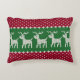 Het is een geweven trui, in een druk! Een zeer gedetailleerd patroon met witte rendieren die over een groen veld lopen en omgeven zijn door een kerstrood met witte versieringen.