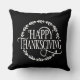 This holiday throw pillow is shown with a Happy Thanksgiving print.