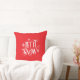 This holiday throw pillow is shown with a let it snow snowflakes print.