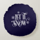 This holiday throw pillow is shown with a let it snow snowflakes print.