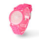 Kids watch is shown with a pink face and a holiday snowflake print.