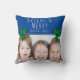 Holly Berry Tree Plant Blue met kerstfoto Kussen