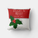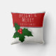 Holly Berry Tree Plant Red Happy Kerstmis Sierkussen. Rood en wit modern kussen met holbessen plant. Voeg jouw naam en tekst op de kussen toe.