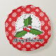 Holly op Red White Snowflakes Pattern - Merry Xmas Rond Kussen