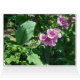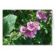 Een grote florale notecard. Elegant roze hollyhocks omgeven door felgroene bladeren.