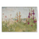 © Cheri Blum/Wild Apple. Hollyhocks van het zee, samen met groen gras. Op de achtergrond kan een blauwe hemel worden gezien.