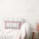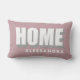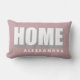 Personalized modern minimalist lumbar pillow with the name for example and bold Home quote typography, with cool shadow relief effect. Soft feminine dusty rose background, white and gray for the sans serif text, easy to match in any ambient. Premium look simple chic decoration for your living room, bedroom, favorite armchair or couch, as well as a creative thoughtful gift for a lady new homeowner, as housewarming gift or a present for the perfect host. Great custom gift idea under 50 dollars for her. Also excellent premium look item to use when staging a house for selling, as cozy classy decorating to make the home more attractive and inviting.