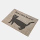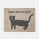 Schattigee kunstzinnige en grappige deurmat geïllustreerd met een zwarte cartoon en een huis is waar de kat tekst is. Mooie deurmat voor een kattenliefhebber, vooral een zwarte katteneigenaar.