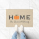 Welkom gasten bij je thuis deze herfst met een uitnodigend gepersonaliseerd portier. Het eenvoudige en stijlvolle typografische ontwerp kenmerkt "Huis"formulering met elegante tekst van het douanemanuscript voor uw familienaam en een oranje oogstpompaccent. Omvat een neutraal beige, kool grijs, oranje, en groen kleurenschema.