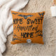 Voeg een spookachtige aanraking aan uw kamer toe met deze gooikussens die perfect is voor Halloween. Het bevat de boodschap "Home Sweet Haunted Home" omringd door spooky decor met vleermuizen, een kat en griezelige bomen die tegen een oranje achtergrond zijn geplaatst.