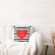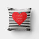 Groot hart met een thuistekst op zwart, zilver en wit gestreept achtergrondSierkussen. Alleen tekst aan de voorzijde. De tekst kan worden gepersonaliseerd.