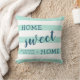 Witte en nertgroene kussens met een gestreepte structuur, een familienaam, een jaartal en een "Home Sweet Home"-typografie. Het is makkelijk om je te personaliseren om een uniek cadeau te maken voor nieuwigheden of om een nieuw huis te versieren. Deze minikussens met donkere turquoise blauwe tekst zijn geschikt voor een kuststrookje.