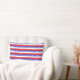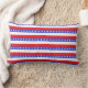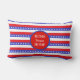 Thuis zoet thuis op rode en witte gestreepte lumbale kussen. Blauwe strepen hebben een sterpatroon. Home Sweet Home staat alleen aan de voorkant. De tekst kan worden gepersonaliseerd. Breng een klein stukje vreugde naar huis.