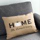 De welkome gasten aan uw huis deze herfst met een uitnodigende gepersonaliseerde lumbale rechthoek werpen kussen. Het eenvoudige en stijlvolle typografische ontwerp kenmerkt "Huis"formulering met elegante tekst van het douanemanuscript voor uw familienaam en een wit oogstpompaccent. Omvat een neutraal bruine, zwarte, witte, en groene kleurenschema.